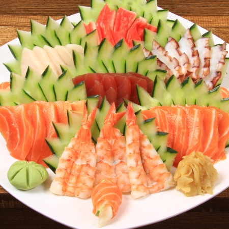 10 Sashimis de Salmão, 5 Sashimis de Atum, 5 Sashimis de Kani, 5 Sashimis de Peixe Branco, 5 Sashimis de Polvo, 3 Sashimis de Camarão e 3 Sashimis Oishi. (36 Unidades)