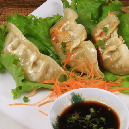 Pastelzinho oriental recheado com carne suĂ­na e legumes.