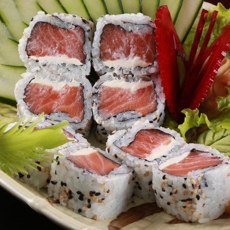 Sushi de alga por dentro e arroz por fora com salmão e cream cheese.  (8 unidades)